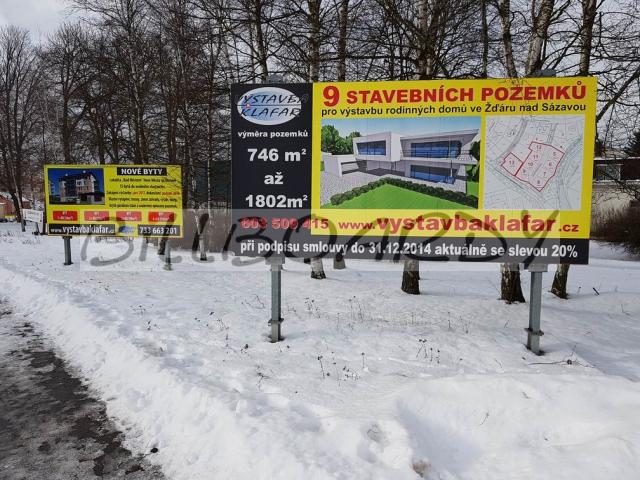 Velmi frekventované místo ve Žďáře nad Sázavou u horní světelné křižovatky ze směru od Nového Města na Moravě. Reklamní plocha je za obchodním centrem Convent, hned vedle silnice, dobře viditelné z dálky. Reklama je přímo za autobusovou zastávkou a před přechodem pro chodce, což samo o sobě zaručuje dostatek času na prohlédnutí reklamy. Rozměr plachty pro výrobu: 400 x 200 cm